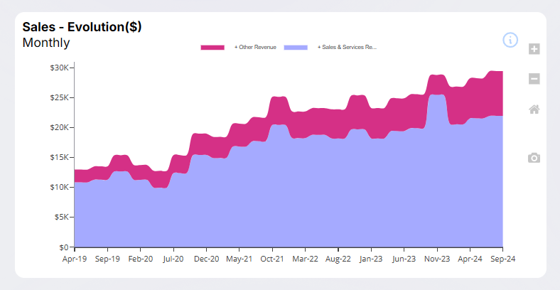 • Visualize and track the evolution of your financial and operational KPIs.